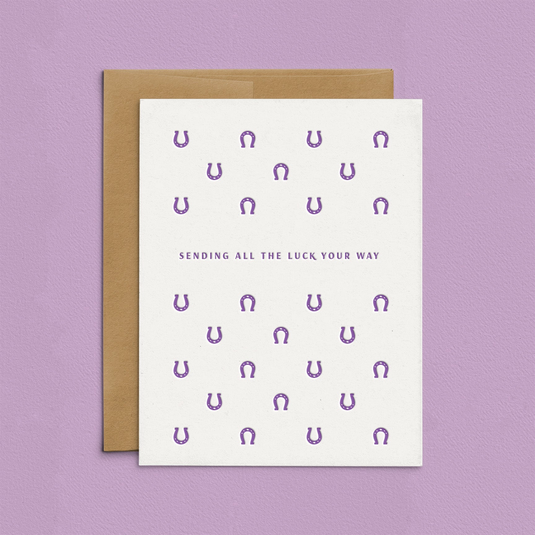 This letterpress card features a modern, minimalist horseshoe pattern so you can send the very best of luck their way for that big event, promotion, or exciting new adventure!